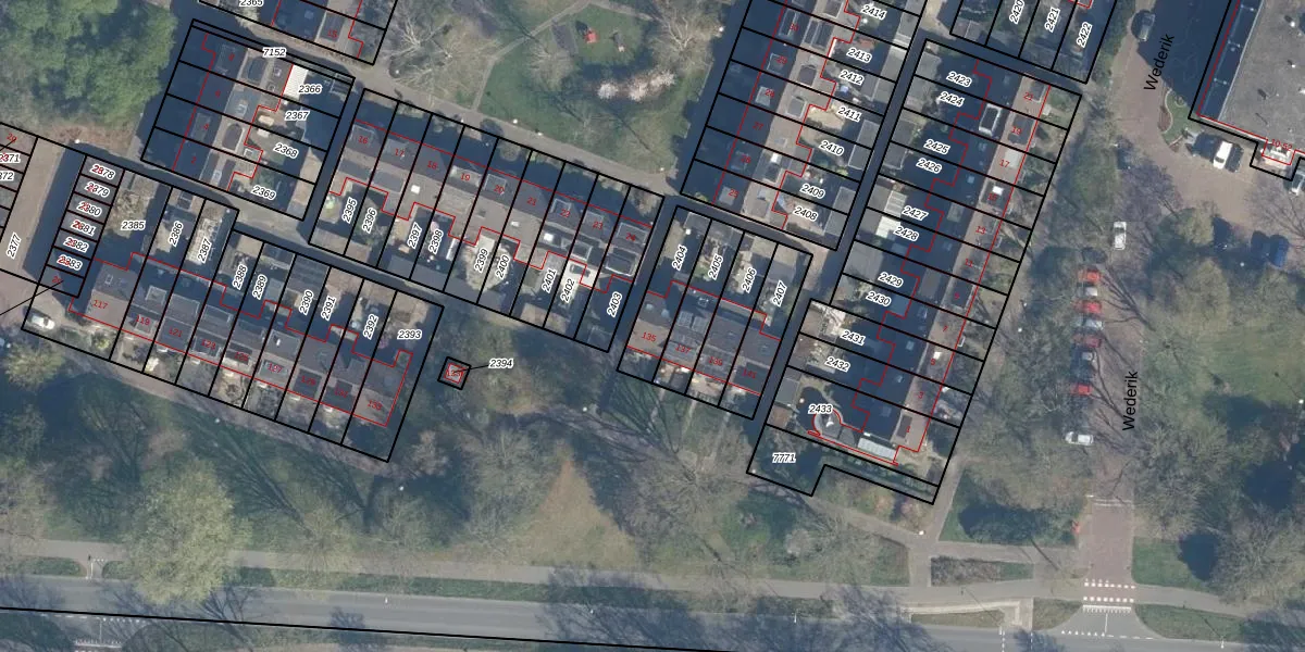 Gebruik de zoekbalk of klik op een perceel voor informatie over de adressen binnen dit perceel.