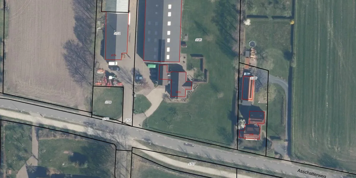 Asschatterweg 207-c is gelegen op kadastraal perceel LDN02G1545. Deze kadastrale aanduiding is uniek en wordt gebruikt door het Kadaster om eigendomsrechten en andere zakelijke rechten vast te leggen. Het perceel maakt onderdeel uit van de kadastrale gemeente Leusden.