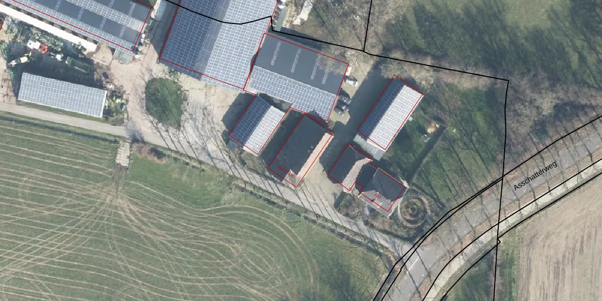 Het perceel waarop Asschatterweg 233-a staat heeft een oppervlakte van 7,6 ha. Dit is een zeer groot perceel. De perceeloppervlakte wordt geregistreerd door het Kadaster. Gedetailleerde informatie over de maten van dit perceel kunt u vinden in het rapport Kadastrale kaart met maatvoering van Asschatterweg 233-a.