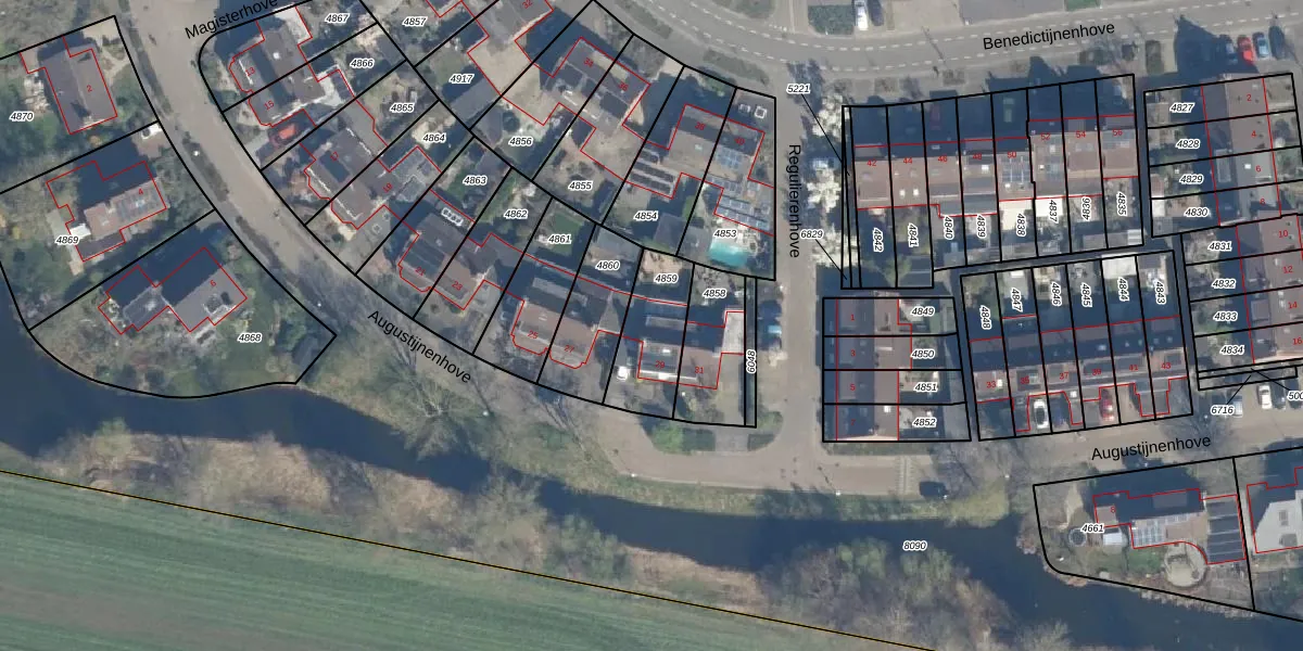 Het perceel waarop Augustijnenhove 29 staat heeft een oppervlakte van 230 m². Dit is een middelgroot perceel. De perceeloppervlakte wordt geregistreerd door het Kadaster. Gedetailleerde informatie over de maten van dit perceel kunt u vinden in het rapport Kadastrale kaart met maatvoering van Augustijnenhove 29.