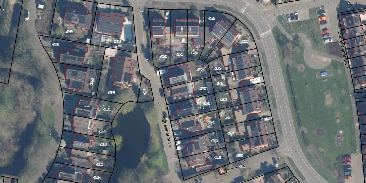 Gebruik de zoekbalk of klik op een perceel voor informatie over de adressen binnen dit perceel.