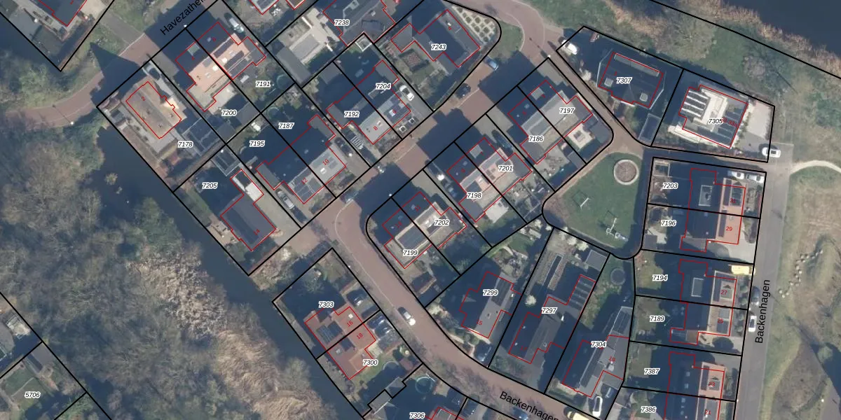 Gebruik de zoekbalk of klik op een perceel voor informatie over de adressen binnen dit perceel.