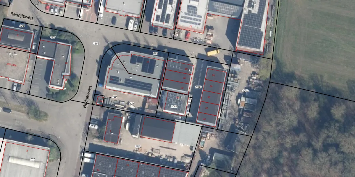 Het perceel waarop Bedrijfsweg 22 staat heeft een oppervlakte van 1051 m². Dit is een zeer groot perceel. De perceeloppervlakte wordt geregistreerd door het Kadaster. Gedetailleerde informatie over de maten van dit perceel kunt u vinden in het rapport Kadastrale kaart met maatvoering van Bedrijfsweg 22.