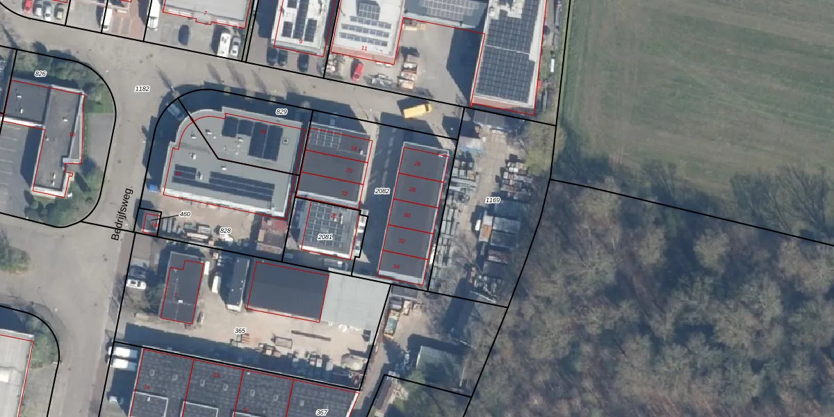 Het perceel waarop Bedrijfsweg 30 staat heeft een oppervlakte van 1051 m². Dit is een zeer groot perceel. De perceeloppervlakte wordt geregistreerd door het Kadaster. Gedetailleerde informatie over de maten van dit perceel kunt u vinden in het rapport Kadastrale kaart met maatvoering van Bedrijfsweg 30.