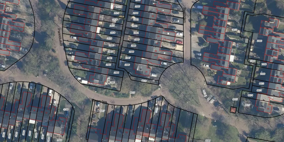 Gebruik de zoekbalk of klik op een perceel voor informatie over de adressen binnen dit perceel.