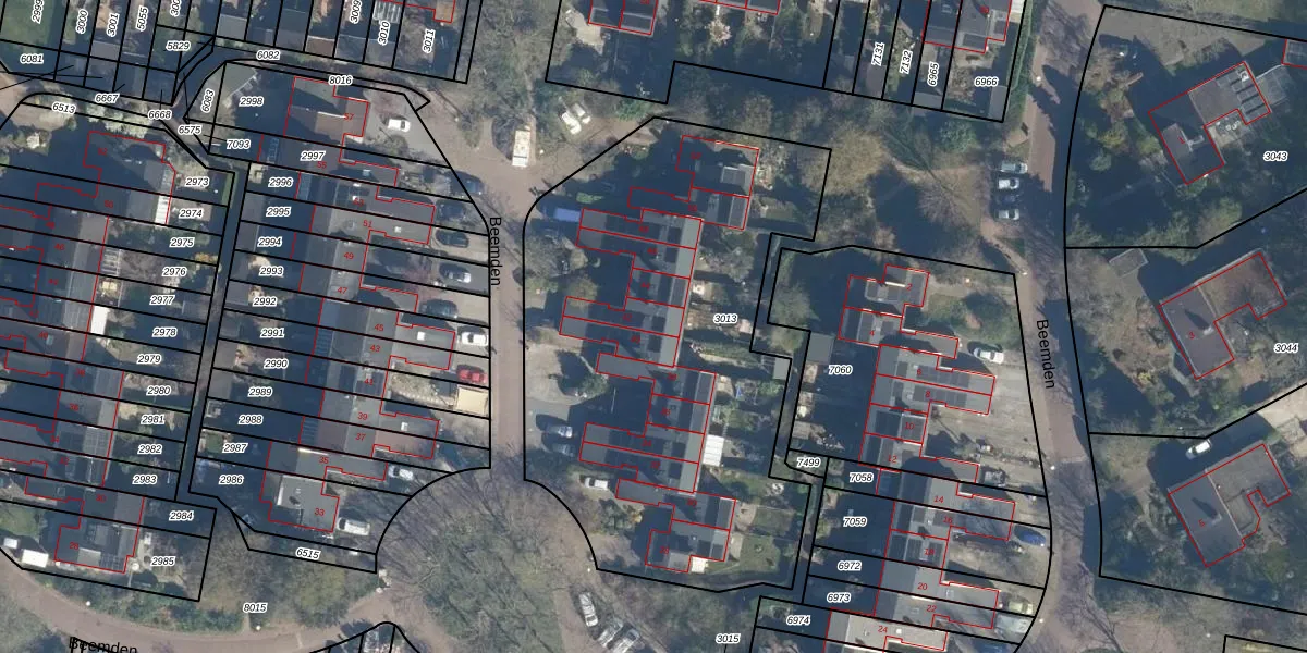 Het perceel waarop Beemden 42 staat heeft een oppervlakte van 2590 m². Dit is een zeer groot perceel. De perceeloppervlakte wordt geregistreerd door het Kadaster. Gedetailleerde informatie over de maten van dit perceel kunt u vinden in het rapport Kadastrale kaart met maatvoering van Beemden 42.