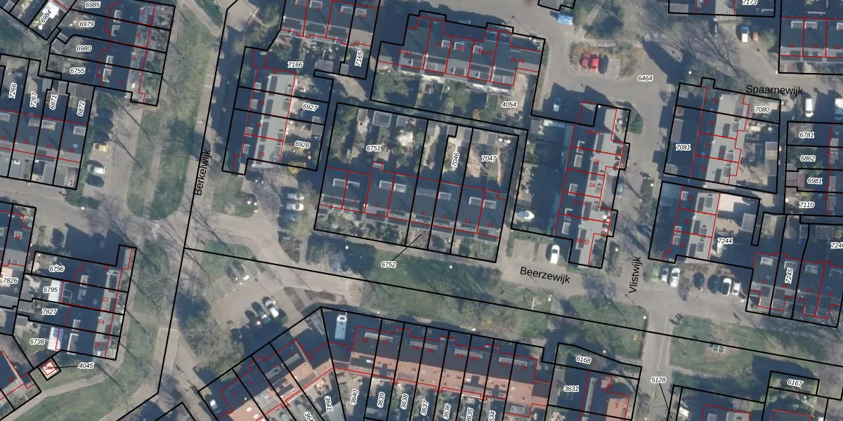 Gebruik de zoekbalk of klik op een perceel voor informatie over de adressen binnen dit perceel.