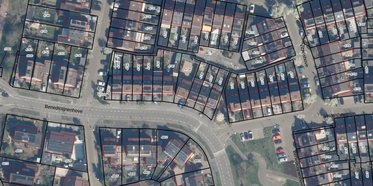 Het perceel waarop Benedictijnenhove 21 staat heeft een oppervlakte van 219 m². Dit is een middelgroot perceel. De perceeloppervlakte wordt geregistreerd door het Kadaster. Gedetailleerde informatie over de maten van dit perceel kunt u vinden in het rapport Kadastrale kaart met maatvoering van Benedictijnenhove 21.