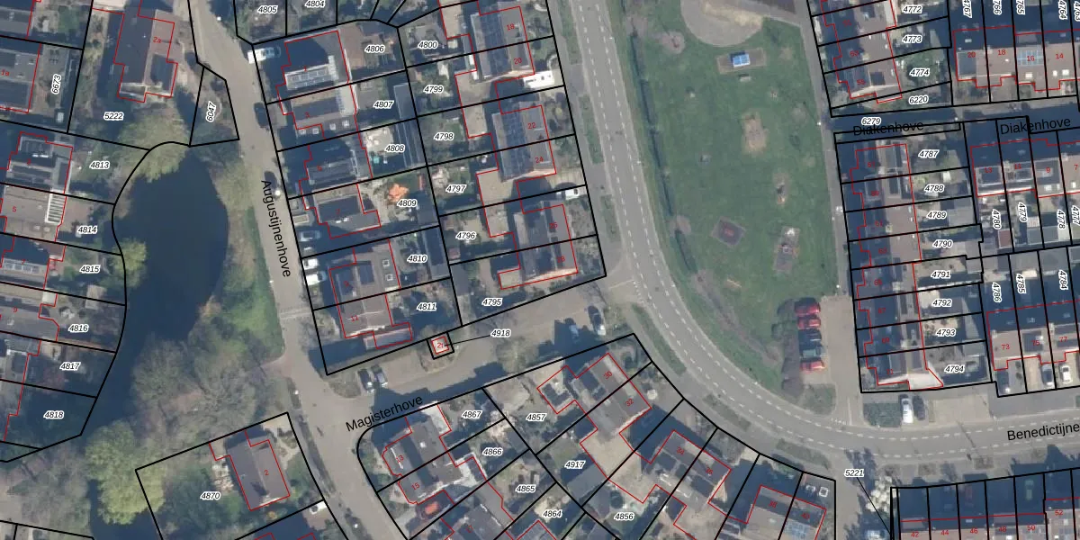 Het perceel waarop Benedictijnenhove 28 staat heeft een oppervlakte van 275 m². Dit is een middelgroot perceel. De perceeloppervlakte wordt geregistreerd door het Kadaster. Gedetailleerde informatie over de maten van dit perceel kunt u vinden in het rapport Kadastrale kaart met maatvoering van Benedictijnenhove 28.