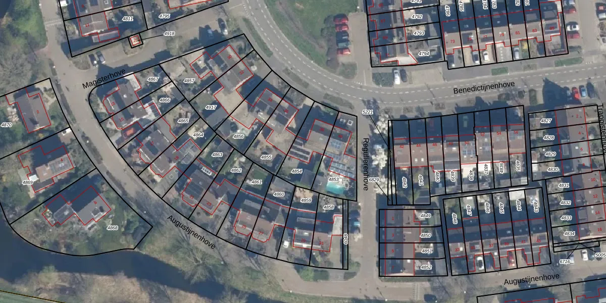 Het perceel waarop Benedictijnenhove 38 staat heeft een oppervlakte van 295 m². Dit is een middelgroot perceel. De perceeloppervlakte wordt geregistreerd door het Kadaster. Gedetailleerde informatie over de maten van dit perceel kunt u vinden in het rapport Kadastrale kaart met maatvoering van Benedictijnenhove 38.