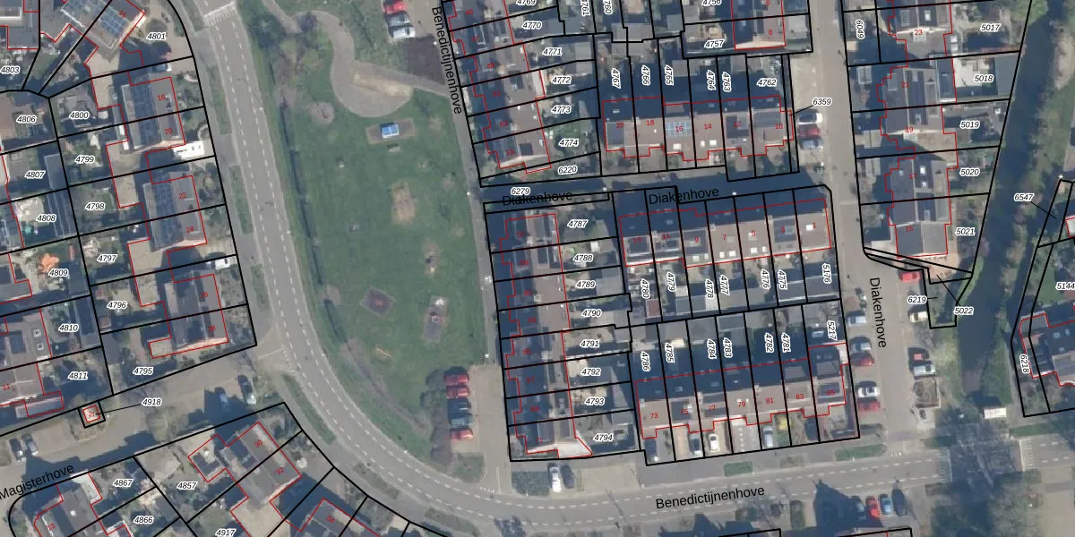 Gebruik de zoekbalk of klik op een perceel voor informatie over de adressen binnen dit perceel.