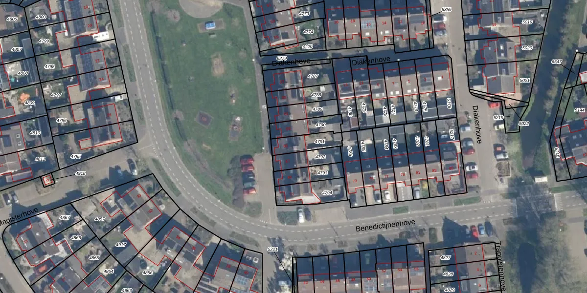 Gebruik de zoekbalk of klik op een perceel voor informatie over de adressen binnen dit perceel.