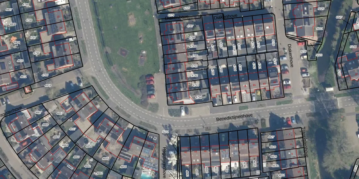 Het perceel waarop Benedictijnenhove 69 staat heeft een oppervlakte van 129 m². Dit is een middelgroot perceel. De perceeloppervlakte wordt geregistreerd door het Kadaster. Gedetailleerde informatie over de maten van dit perceel kunt u vinden in het rapport Kadastrale kaart met maatvoering van Benedictijnenhove 69.