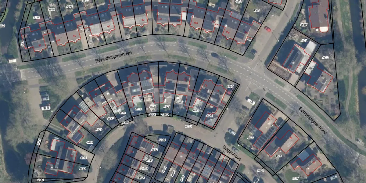 Gebruik de zoekbalk of klik op een perceel voor informatie over de adressen binnen dit perceel.