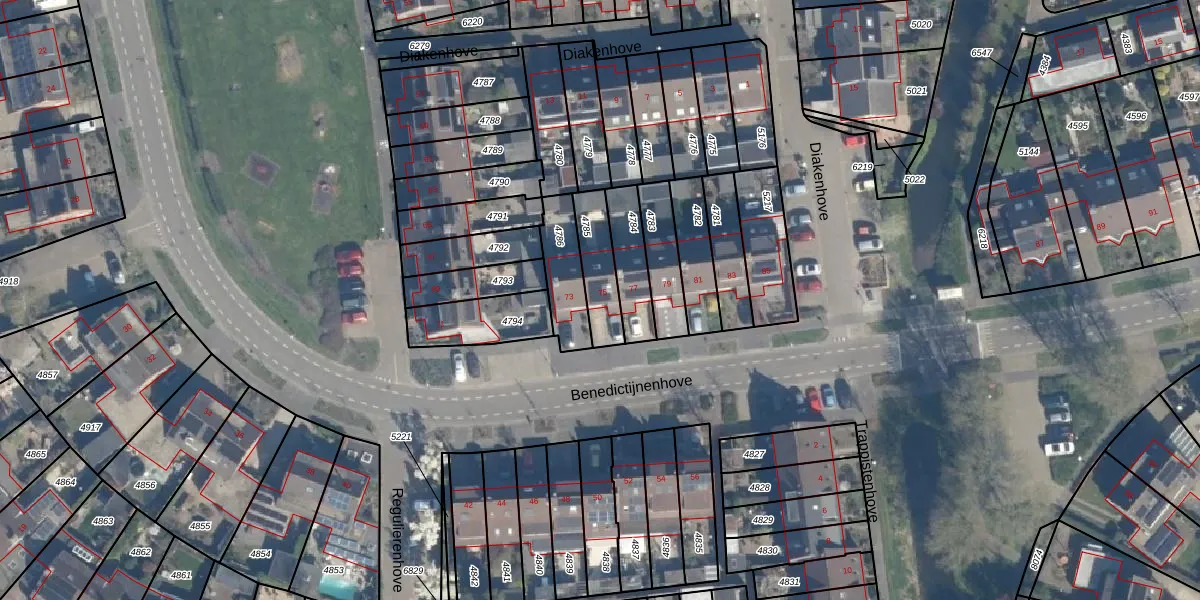 Het perceel waarop Benedictijnenhove 75 staat heeft een oppervlakte van 140 m². Dit is een middelgroot perceel. De perceeloppervlakte wordt geregistreerd door het Kadaster. Gedetailleerde informatie over de maten van dit perceel kunt u vinden in het rapport Kadastrale kaart met maatvoering van Benedictijnenhove 75.