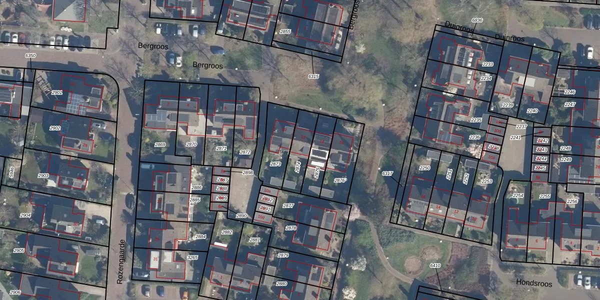 Het perceel waarop Bergroos 12 staat heeft een oppervlakte van 177 m². Dit is een middelgroot perceel. De perceeloppervlakte wordt geregistreerd door het Kadaster. Gedetailleerde informatie over de maten van dit perceel kunt u vinden in het rapport Kadastrale kaart met maatvoering van Bergroos 12.