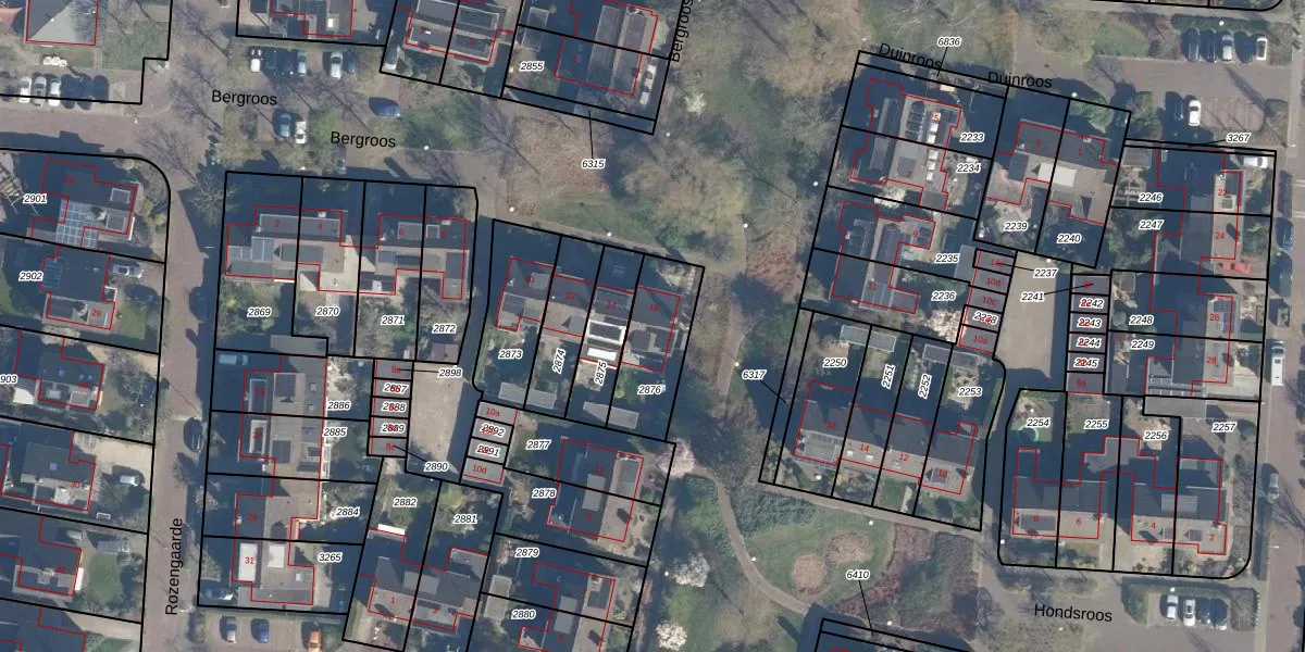 Het perceel waarop Bergroos 16 staat heeft een oppervlakte van 244 m². Dit is een middelgroot perceel. De perceeloppervlakte wordt geregistreerd door het Kadaster. Gedetailleerde informatie over de maten van dit perceel kunt u vinden in het rapport Kadastrale kaart met maatvoering van Bergroos 16.