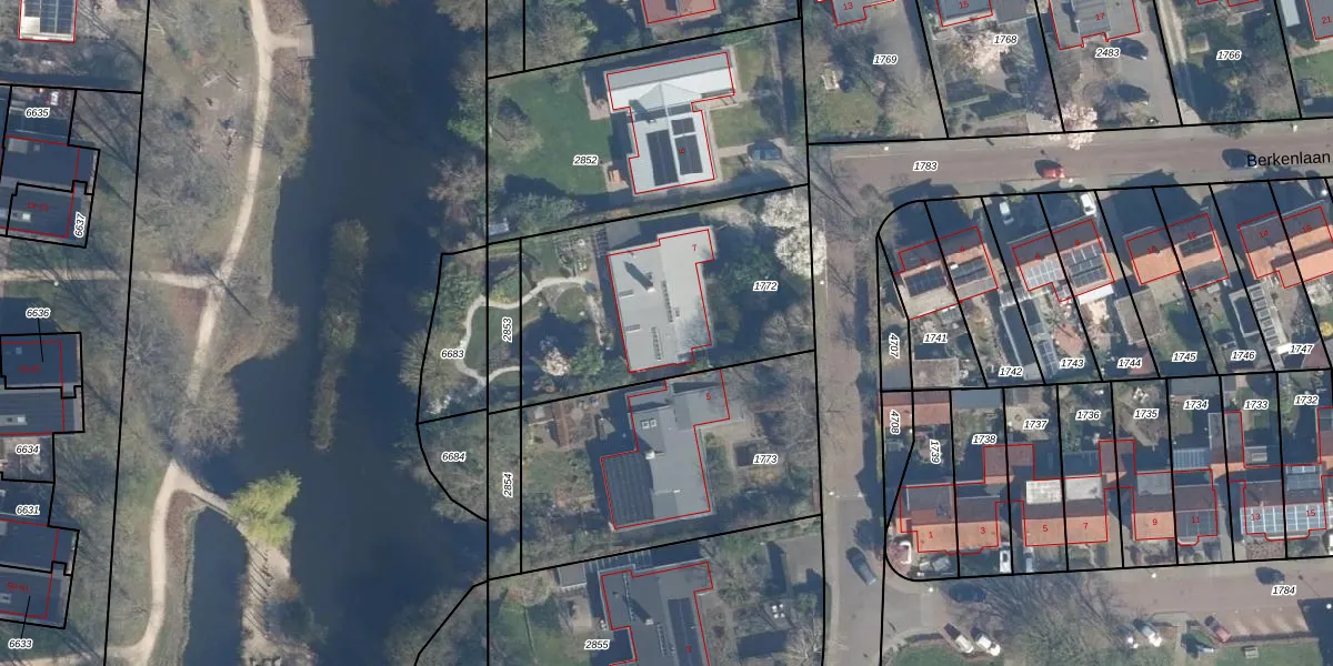 Het perceel waarop Berkenlaan 7 staat heeft een oppervlakte van 1089 m². Dit is een zeer groot perceel. De perceeloppervlakte wordt geregistreerd door het Kadaster. Gedetailleerde informatie over de maten van dit perceel kunt u vinden in het rapport Kadastrale kaart met maatvoering van Berkenlaan 7.