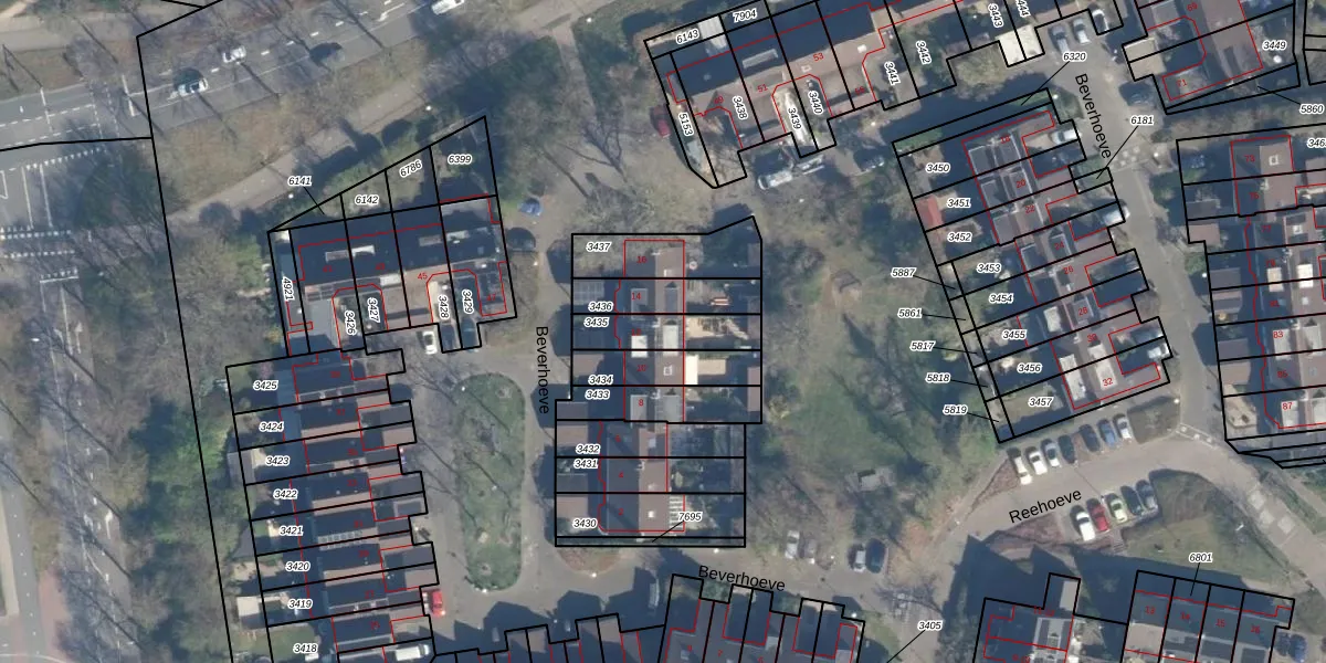 Gebruik de zoekbalk of klik op een perceel voor informatie over de adressen binnen dit perceel.