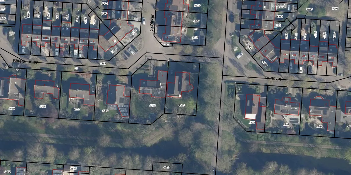 Gebruik de zoekbalk of klik op een perceel voor informatie over de adressen binnen dit perceel.