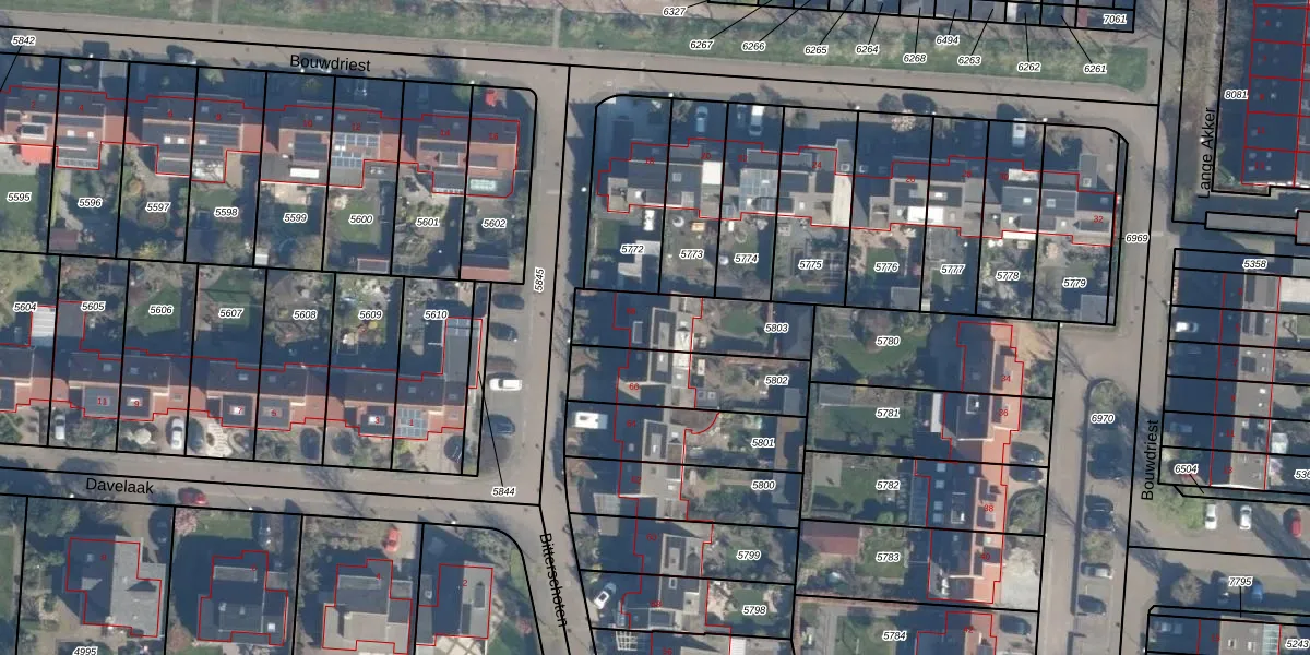 Het perceel waarop Bitterschoten 68 staat heeft een oppervlakte van 316 m². Dit is een groot perceel. De perceeloppervlakte wordt geregistreerd door het Kadaster. Gedetailleerde informatie over de maten van dit perceel kunt u vinden in het rapport Kadastrale kaart met maatvoering van Bitterschoten 68.