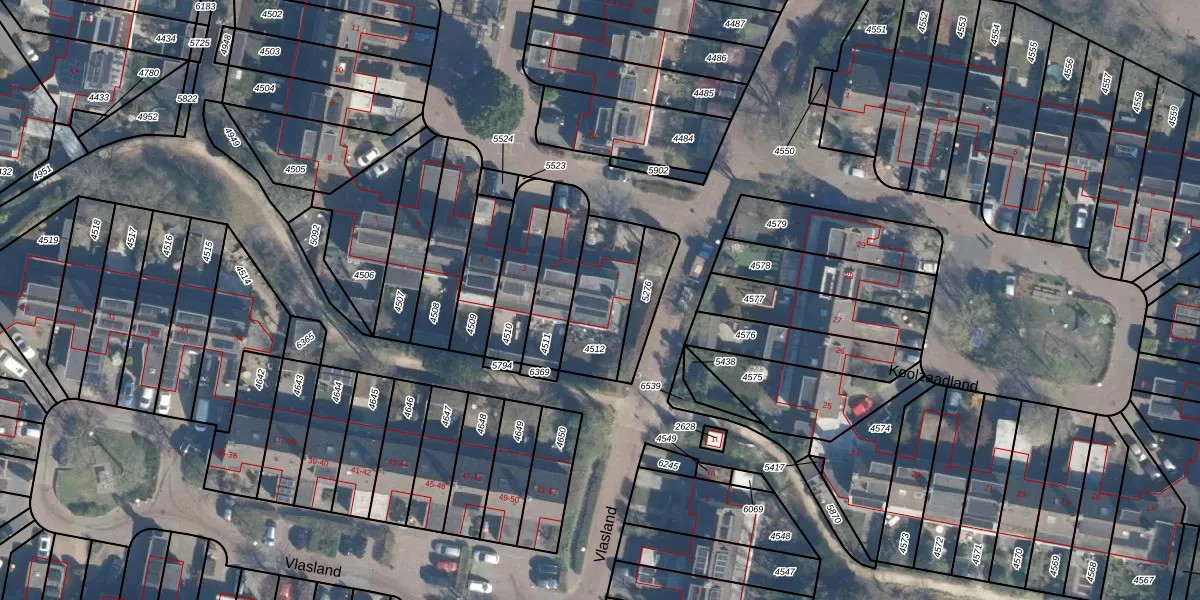 Het adres is gelegen op perceel 4512 in de sectie E en de kadastrale gemeente Leusden. De kadastrale aanduiding is aldus LDN02-E-4512. Het perceel is 251 m² groot. Dat is kleiner dan de gemiddelde perceeloppervlakte in Leusden, dat op 3490,73 m² ligt. Het grootste perceel in de kadastrale gemeente is 8,56 km². Het kleinste perceel heeft een oppervlakte van 0 m². Op het perceel bevinden zich geen andere adressen. De huidige grenzen van het perceel zijn digitaal in de Basisregistratie Kadaster (BRK) geregistreerd op 05-08-2010.