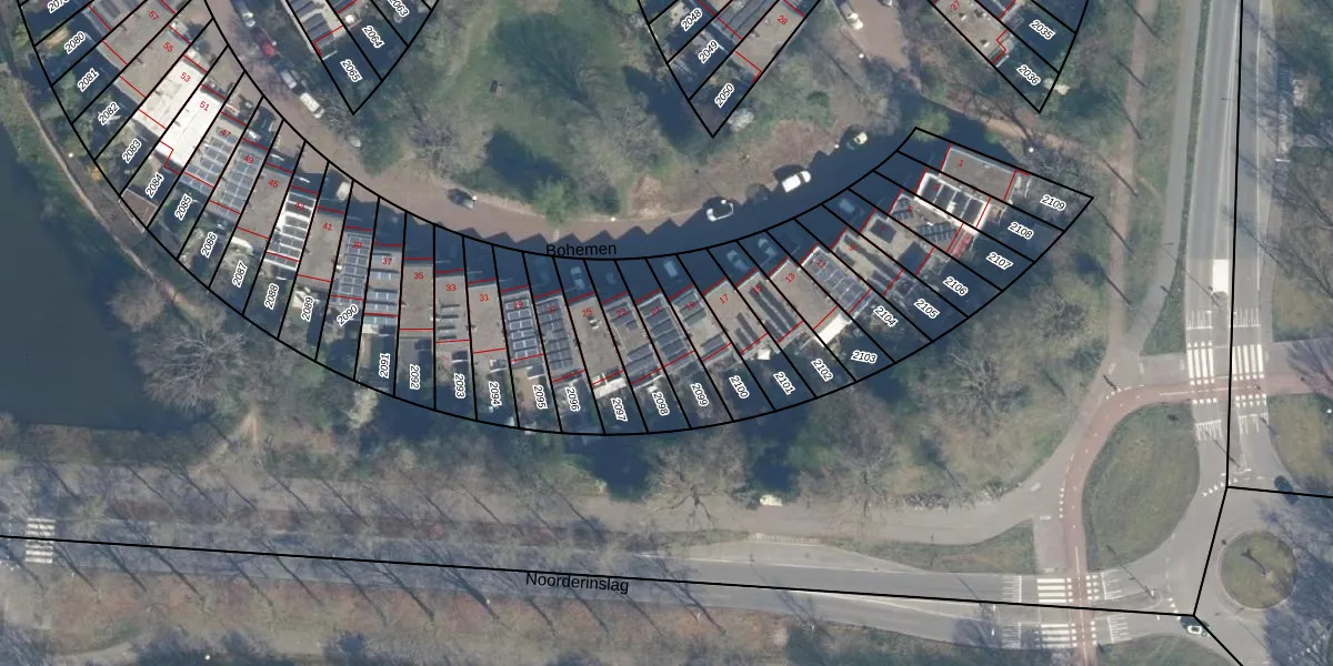 Gebruik de zoekbalk of klik op een perceel voor informatie over de adressen binnen dit perceel.
