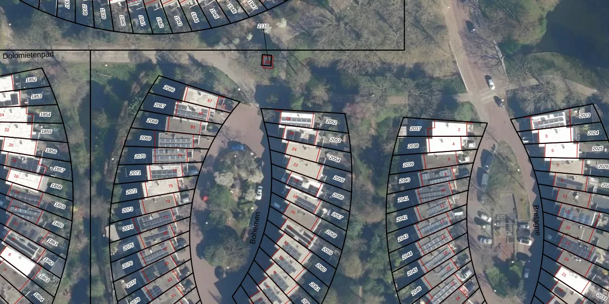 Gebruik de zoekbalk of klik op een perceel voor informatie over de adressen binnen dit perceel.