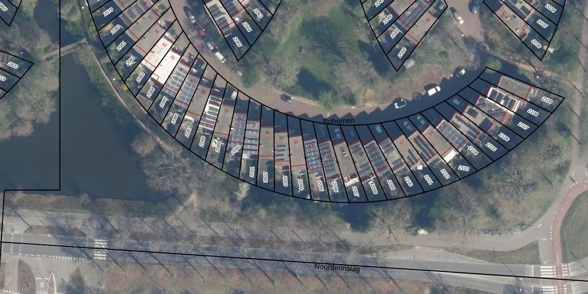 Gebruik de zoekbalk of klik op een perceel voor informatie over de adressen binnen dit perceel.