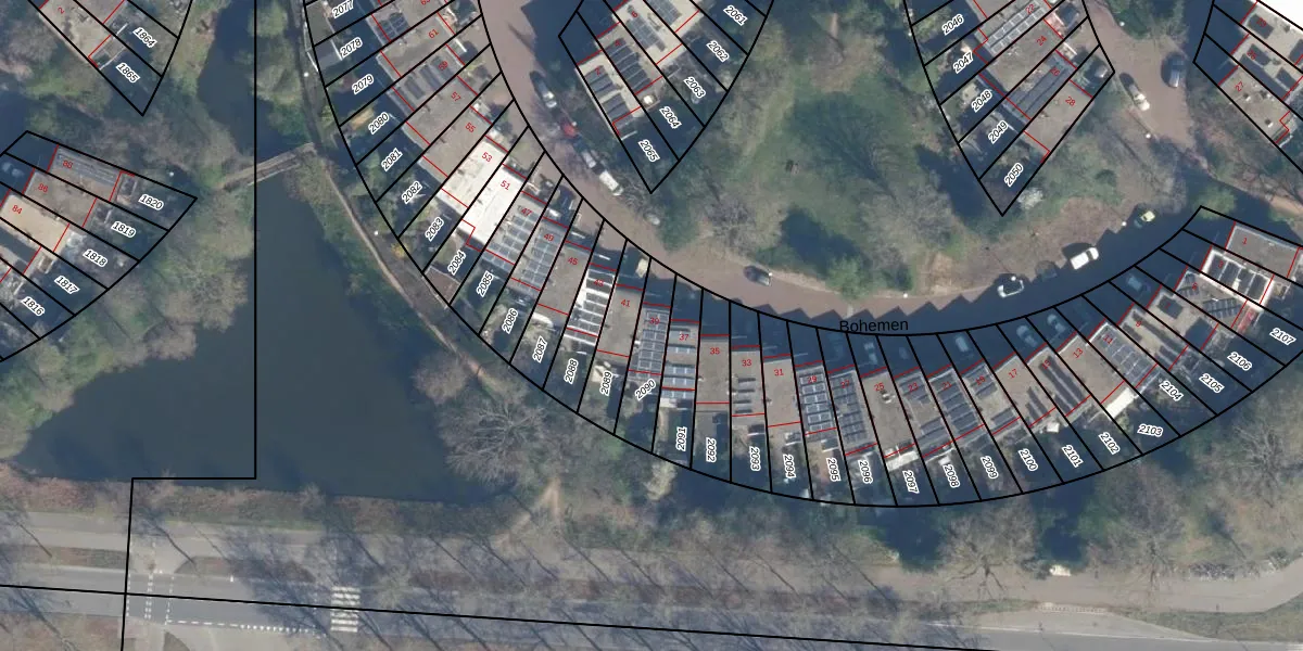Gebruik de zoekbalk of klik op een perceel voor informatie over de adressen binnen dit perceel.