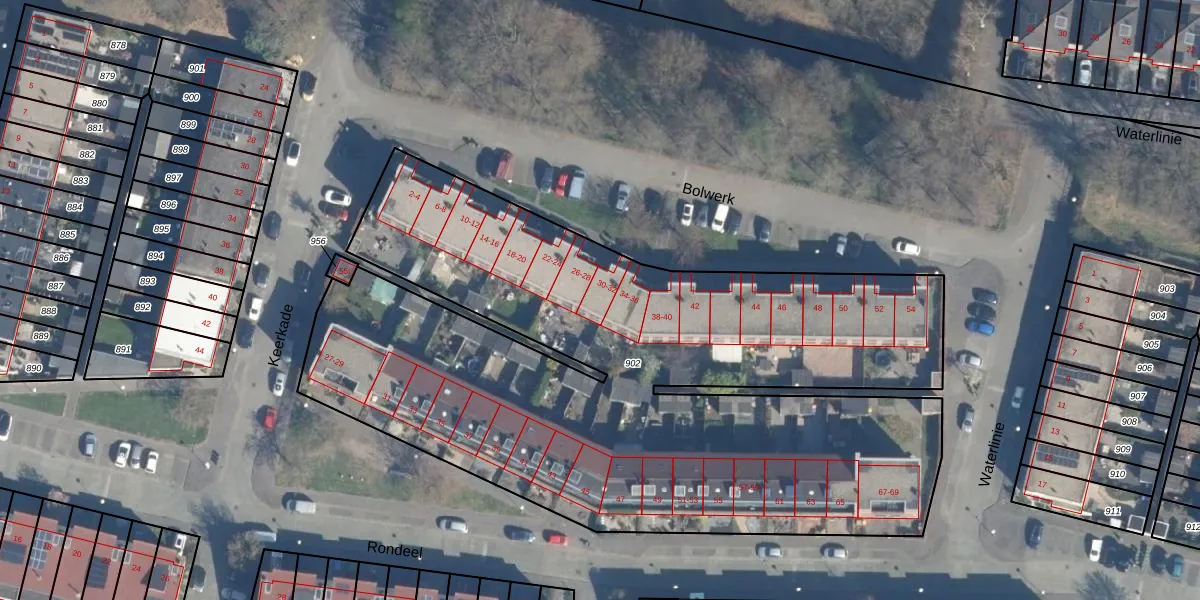 Het perceel waarop Bolwerk 32 staat heeft een oppervlakte van 4421 m². Dit is een zeer groot perceel. De perceeloppervlakte wordt geregistreerd door het Kadaster. Gedetailleerde informatie over de maten van dit perceel kunt u vinden in het rapport Kadastrale kaart met maatvoering van Bolwerk 32.