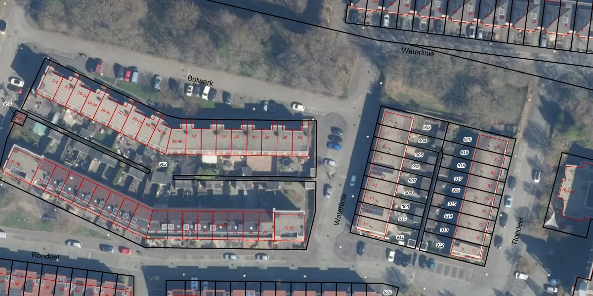 Het perceel waarop Bolwerk 54 staat heeft een oppervlakte van 4421 m². Dit is een zeer groot perceel. De perceeloppervlakte wordt geregistreerd door het Kadaster. Gedetailleerde informatie over de maten van dit perceel kunt u vinden in het rapport Kadastrale kaart met maatvoering van Bolwerk 54.