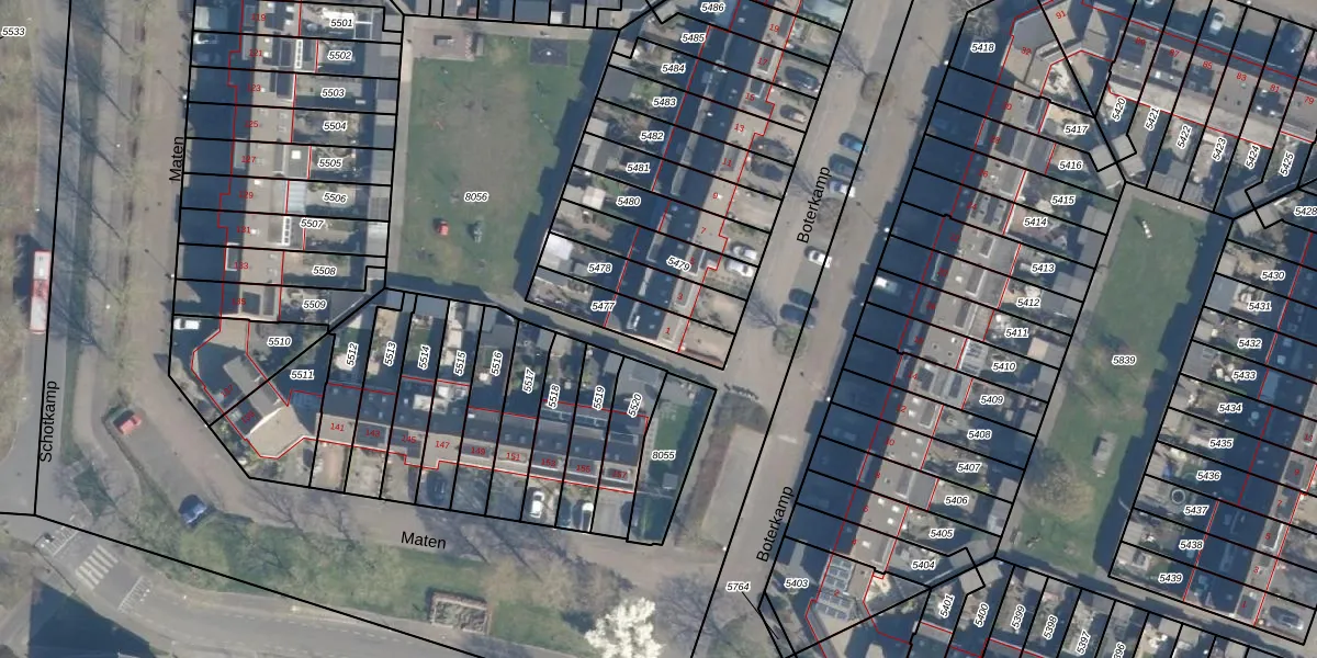 Het perceel waarop Boterkamp 1 staat heeft een oppervlakte van 179 m². Dit is een middelgroot perceel. De perceeloppervlakte wordt geregistreerd door het Kadaster. Gedetailleerde informatie over de maten van dit perceel kunt u vinden in het rapport Kadastrale kaart met maatvoering van Boterkamp 1.