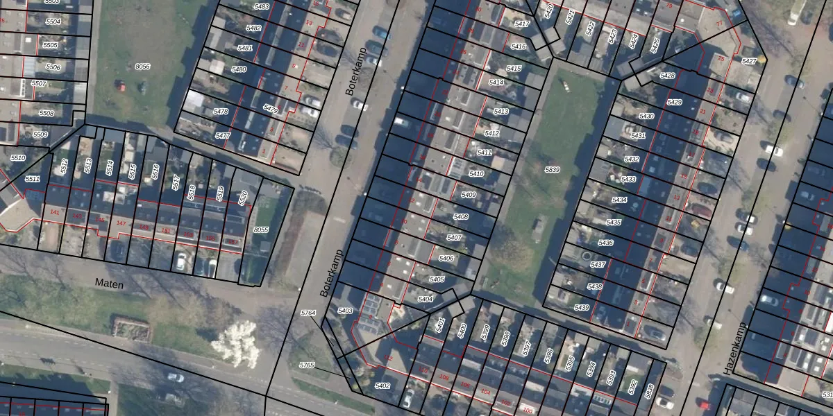 Gebruik de zoekbalk of klik op een perceel voor informatie over de adressen binnen dit perceel.