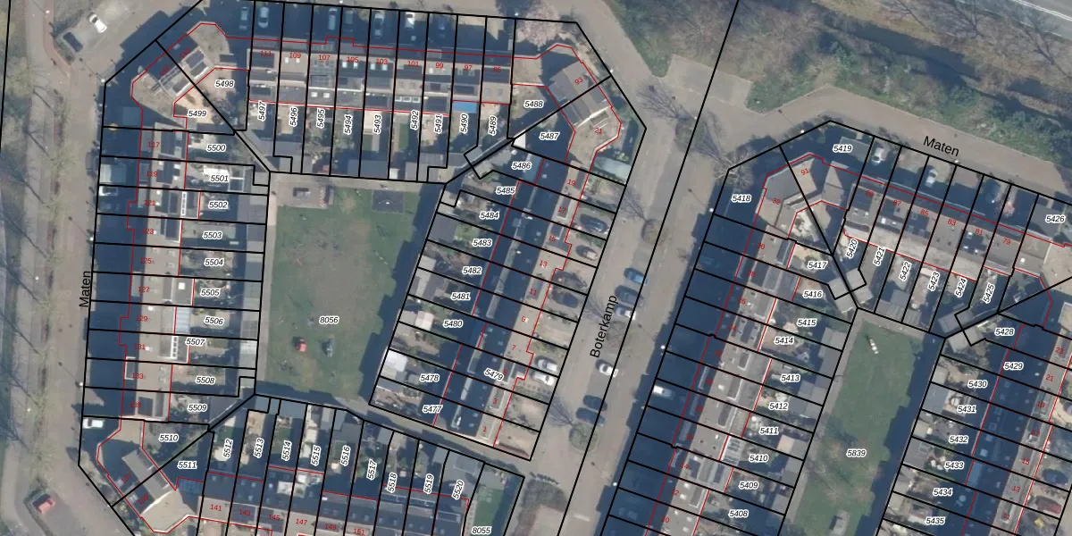 Het perceel waarop Boterkamp 13 staat heeft een oppervlakte van 172 m². Dit is een middelgroot perceel. De perceeloppervlakte wordt geregistreerd door het Kadaster. Gedetailleerde informatie over de maten van dit perceel kunt u vinden in het rapport Kadastrale kaart met maatvoering van Boterkamp 13.