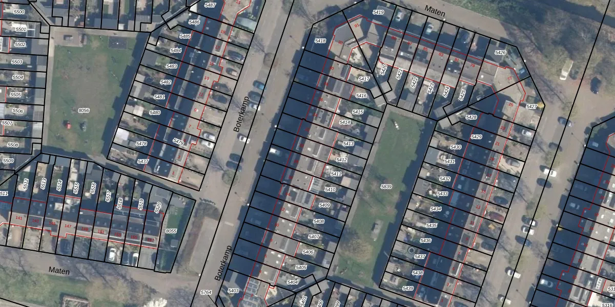 Het perceel waarop Boterkamp 20 staat heeft een oppervlakte van 170 m². Dit is een middelgroot perceel. De perceeloppervlakte wordt geregistreerd door het Kadaster. Gedetailleerde informatie over de maten van dit perceel kunt u vinden in het rapport Kadastrale kaart met maatvoering van Boterkamp 20.
