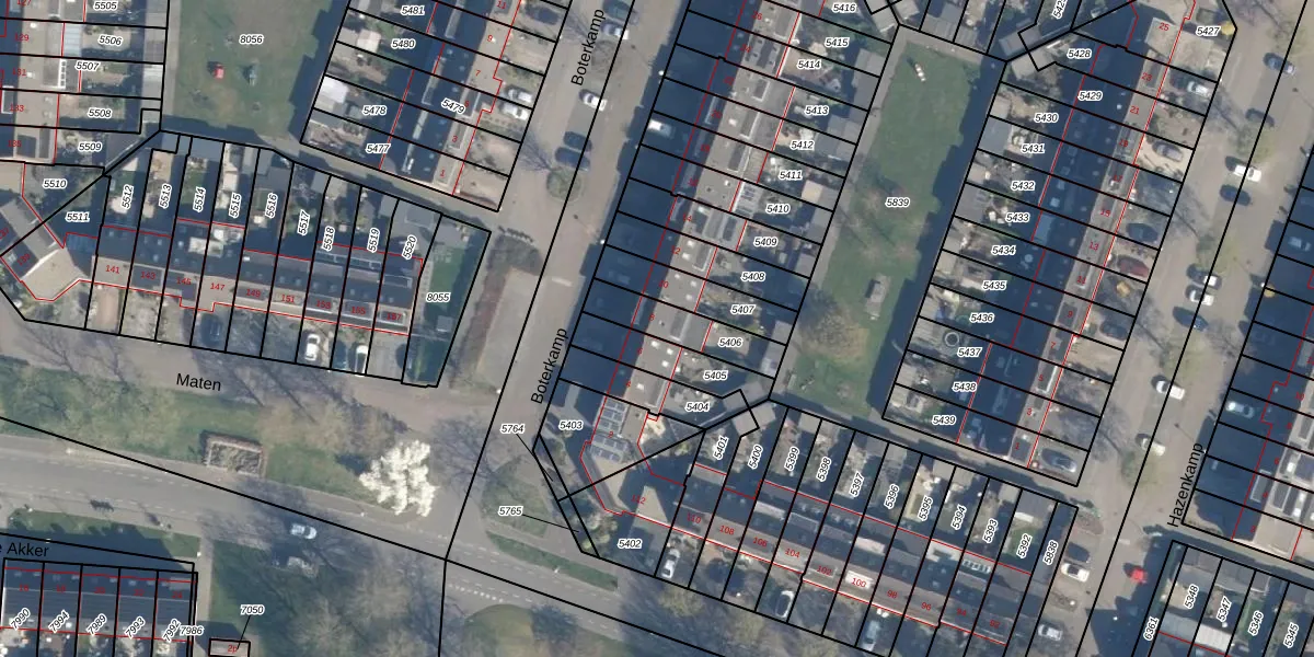 Het perceel waarop Boterkamp 8 staat heeft een oppervlakte van 170 m². Dit is een middelgroot perceel. De perceeloppervlakte wordt geregistreerd door het Kadaster. Gedetailleerde informatie over de maten van dit perceel kunt u vinden in het rapport Kadastrale kaart met maatvoering van Boterkamp 8.