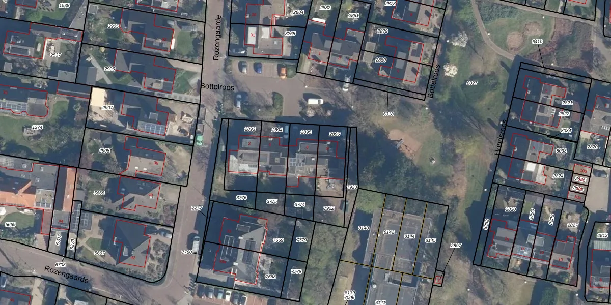 Het perceel waarop Bottelroos 6 staat heeft een oppervlakte van 223 m². Dit is een middelgroot perceel. De perceeloppervlakte wordt geregistreerd door het Kadaster. Gedetailleerde informatie over de maten van dit perceel kunt u vinden in het rapport Kadastrale kaart met maatvoering van Bottelroos 6.