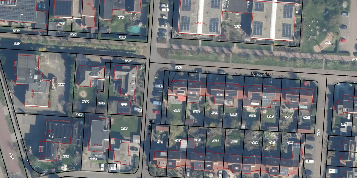 Het perceel waarop Bouwdriest 2 staat heeft een oppervlakte van 324 m². Dit is een groot perceel. De perceeloppervlakte wordt geregistreerd door het Kadaster. Gedetailleerde informatie over de maten van dit perceel kunt u vinden in het rapport Kadastrale kaart met maatvoering van Bouwdriest 2.