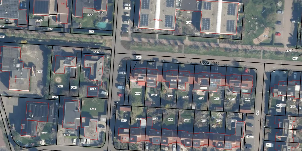 Gebruik de zoekbalk of klik op een perceel voor informatie over de adressen binnen dit perceel.