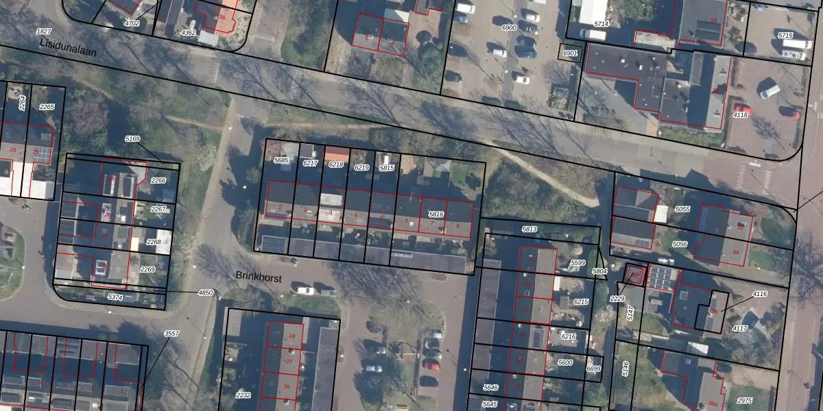 Het perceel waarop Brinkhorst 6 staat heeft een oppervlakte van 577 m². Dit is een groot perceel. De perceeloppervlakte wordt geregistreerd door het Kadaster. Gedetailleerde informatie over de maten van dit perceel kunt u vinden in het rapport Kadastrale kaart met maatvoering van Brinkhorst 6.