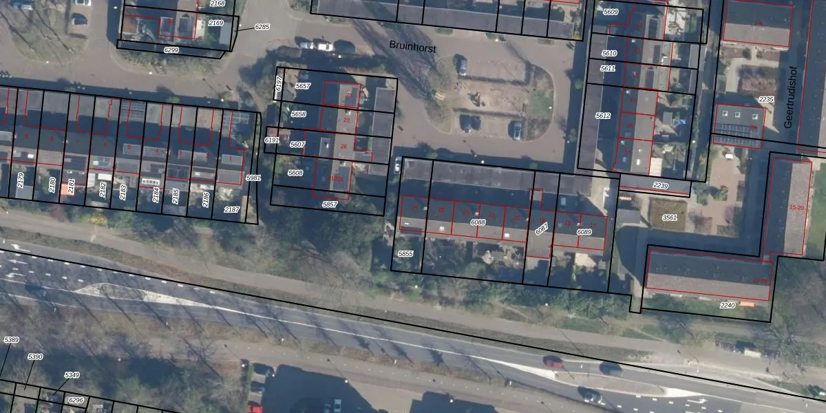 Gebruik de zoekbalk of klik op een perceel voor informatie over de adressen binnen dit perceel.