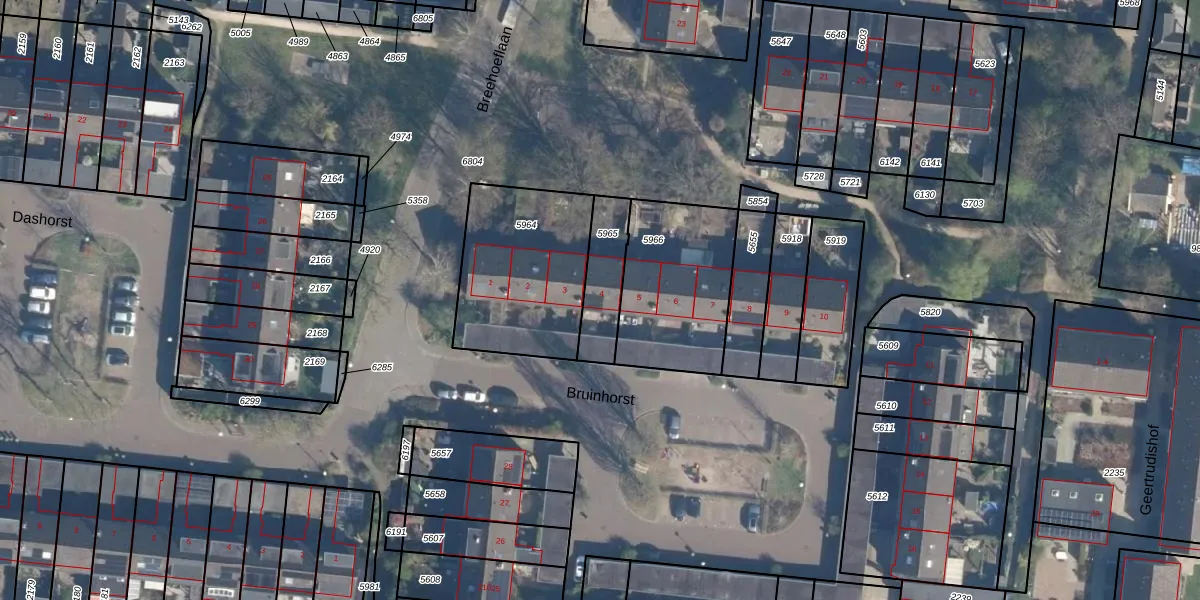 Gebruik de zoekbalk of klik op een perceel voor informatie over de adressen binnen dit perceel.