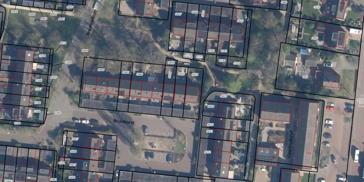 Gebruik de zoekbalk of klik op een perceel voor informatie over de adressen binnen dit perceel.