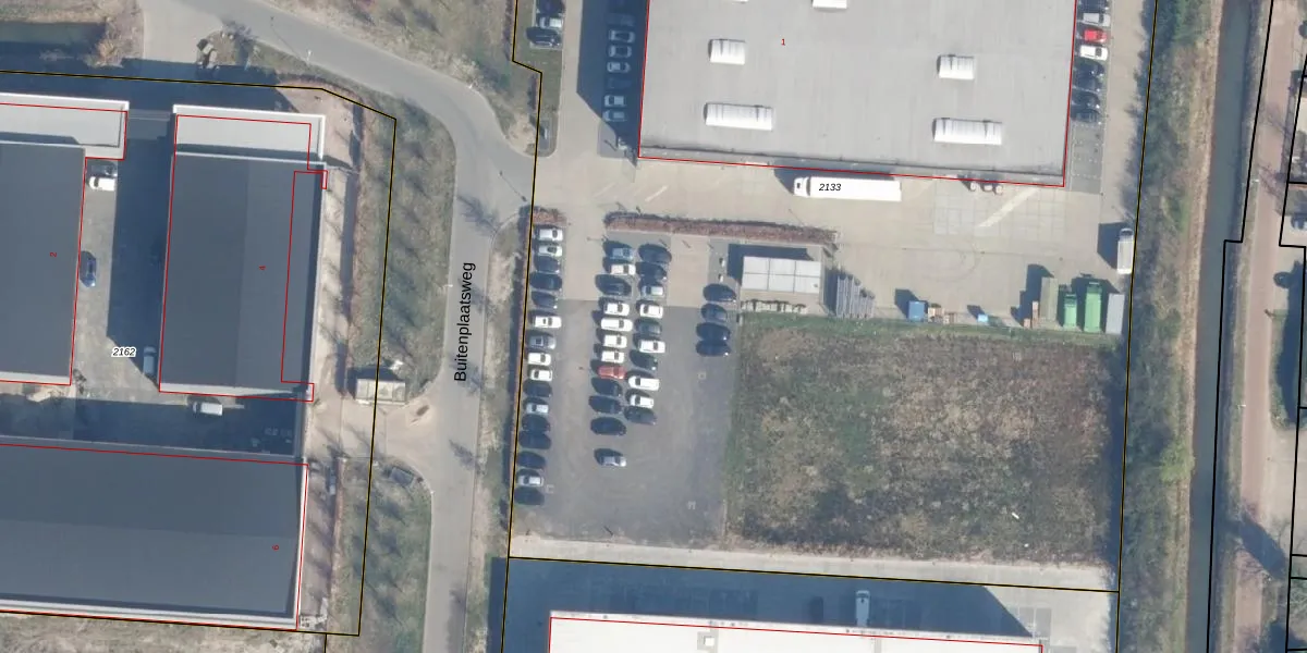 Het perceel waarop Buitenplaatsweg 1-c staat heeft een oppervlakte van 1,1 ha. Dit is een zeer groot perceel. De perceeloppervlakte wordt geregistreerd door het Kadaster. Gedetailleerde informatie over de maten van dit perceel kunt u vinden in het rapport Kadastrale kaart met maatvoering van Buitenplaatsweg 1-c.