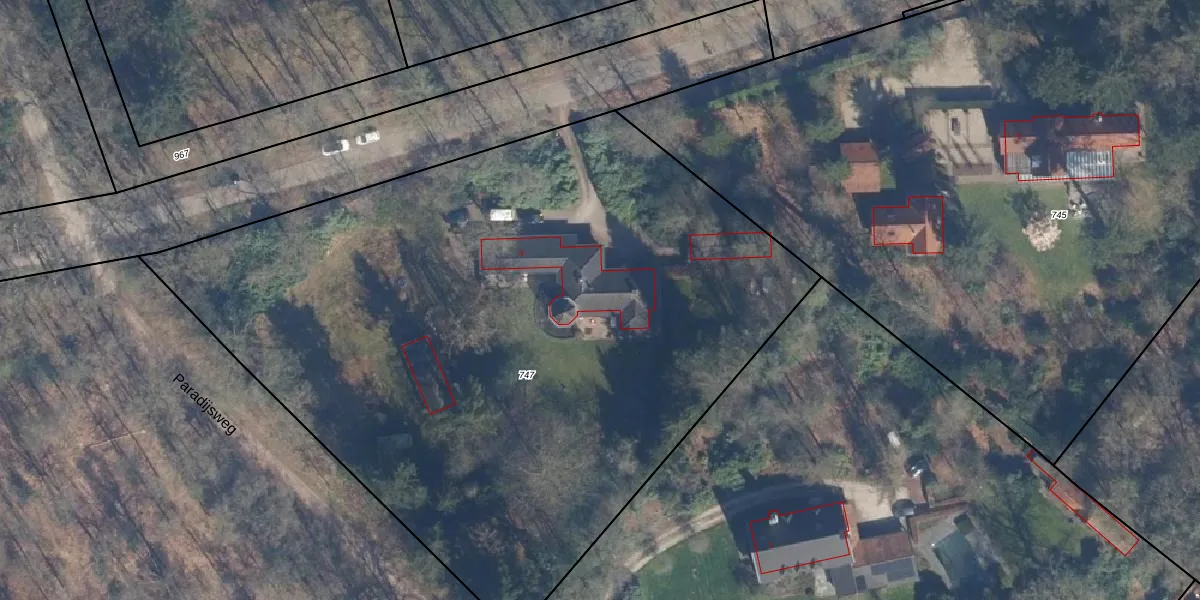 Het adres is gelegen op perceel 747 in de sectie B en de kadastrale gemeente Leusden. De kadastrale aanduiding is aldus LDN02-B-747. Het perceel is met 5050 m² relatief groot. Het gemiddelde ligt in de kadastrale gemeente Leusden op 3492,5 m². Het grootste perceel in de kadastrale gemeente is 8,56 km². Het kleinste perceel heeft een oppervlakte van 0 m². Dit is het enige adres dat aanwezig is op het perceel. De huidige grenzen van het perceel zijn digitaal in de Basisregistratie Kadaster (BRK) geregistreerd op 19-09-1997.