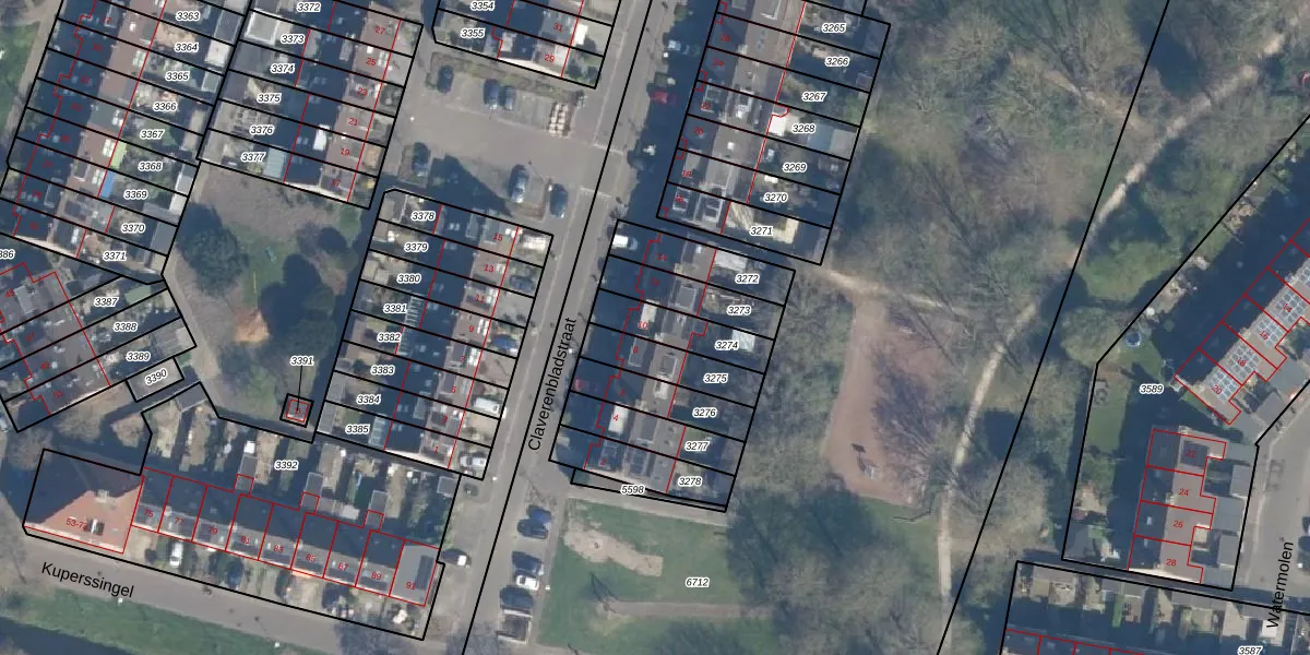 Gebruik de zoekbalk of klik op een perceel voor informatie over de adressen binnen dit perceel.