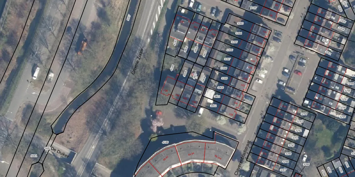 Claverenbladstraat 134 is gelegen op kadastraal perceel LDN02E3406. Deze kadastrale aanduiding is uniek en wordt gebruikt door het Kadaster om eigendomsrechten en andere zakelijke rechten vast te leggen. Het perceel maakt onderdeel uit van de kadastrale gemeente Leusden.