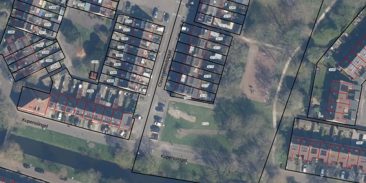 Gebruik de zoekbalk of klik op een perceel voor informatie over de adressen binnen dit perceel.