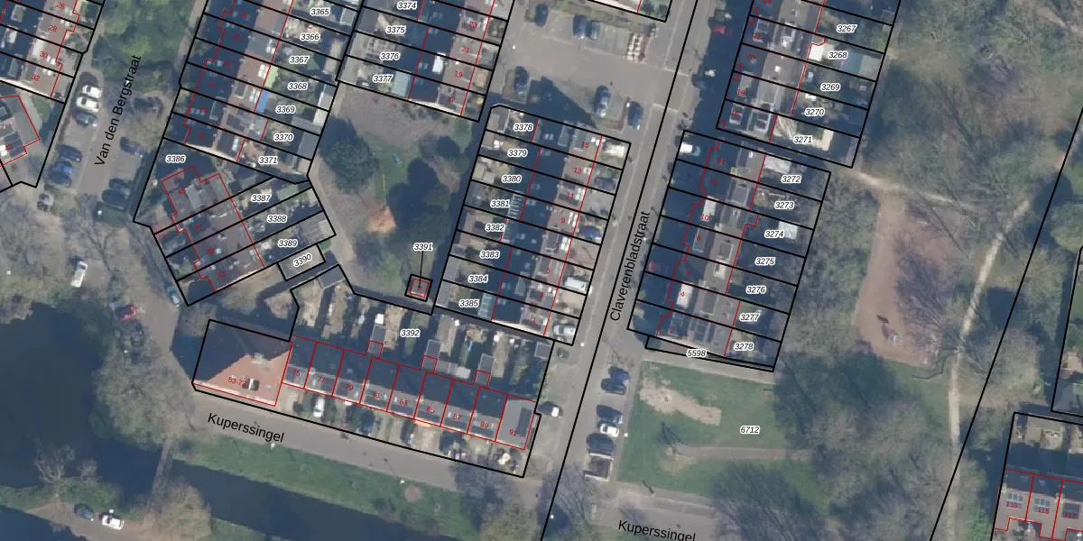 Gebruik de zoekbalk of klik op een perceel voor informatie over de adressen binnen dit perceel.